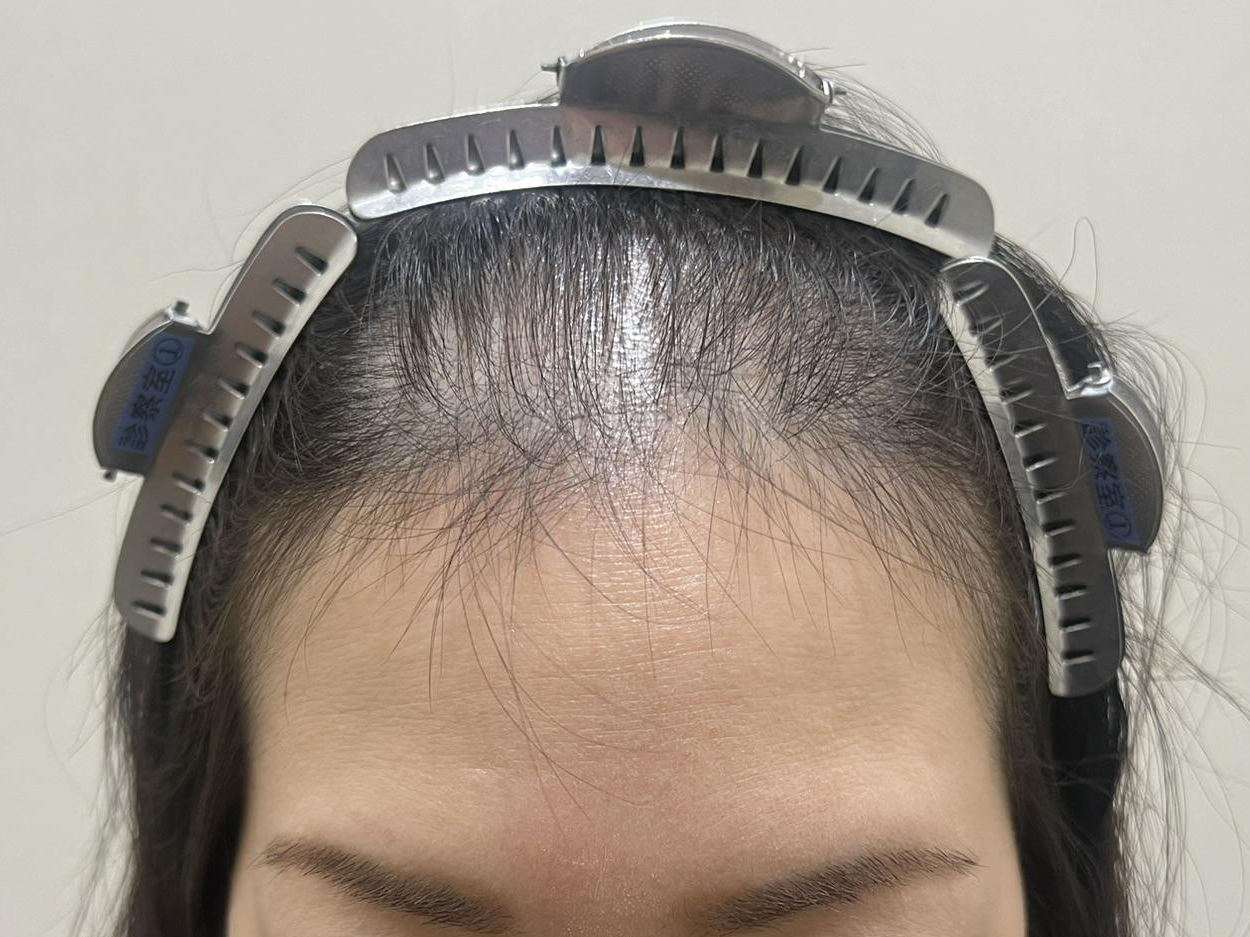 移植毛は順調に成長し、四角く広かったおでこが自然な丸みを帯びた女性らしい生え際へと変化。 主なリスクと副作用について 術後のショックロスならびにごく希に採取部にも円形脱毛状の一時的脱落が起こる可能性がある。また、移植毛は若干クセ毛になる。移植部に知覚鈍磨が起こる等々 女性 / 30代 / 前頭部~頭頂部・分け目 / 1,000グラフト / 1,650,000円(税別) 施術前