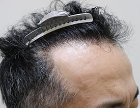 薄毛の症状に若いころから長年悩んでいたが治療するきっかけや勇気がなかったようで、かなり症状が悪化した状態での来院でした。