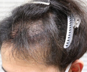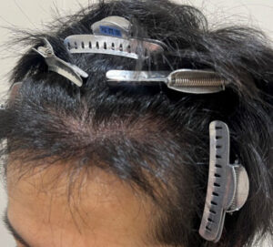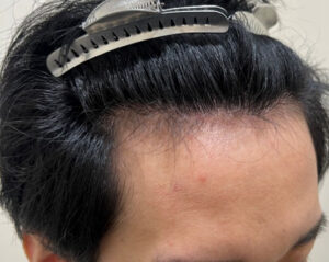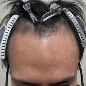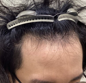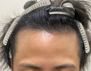 患者様は29歳の男性で、生え際が頭頂部近くまで後退していたため、2300株の自毛植毛を行いました。