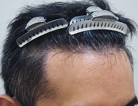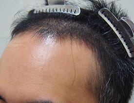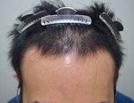 また、移植毛は若干クセ毛になる。移植部に知覚鈍磨が起こる等々 男性 / 30代 / 前頭部~頭頂部 / 1,500グラフト 施術前